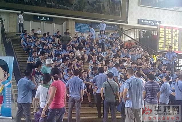 本人昨天下午坐车去上海,昨天下午进站,发现大厅类站满了铁路工作人员,旁边的一个工作人员告诉我,现在长沙机务段300多名火车司机全部罢工,今天来了100多个准备坐火车去北京铁道部上访.理由是:几个月没给加班费,该有奖金都没有发.超劳.上十天没回家是经常发生的事情.另一个工作员说:段长怕影响太大,当下就撤掉了几个相关干部.图为,机务段段长在前面做工作,组织司机上访,后果很严重。